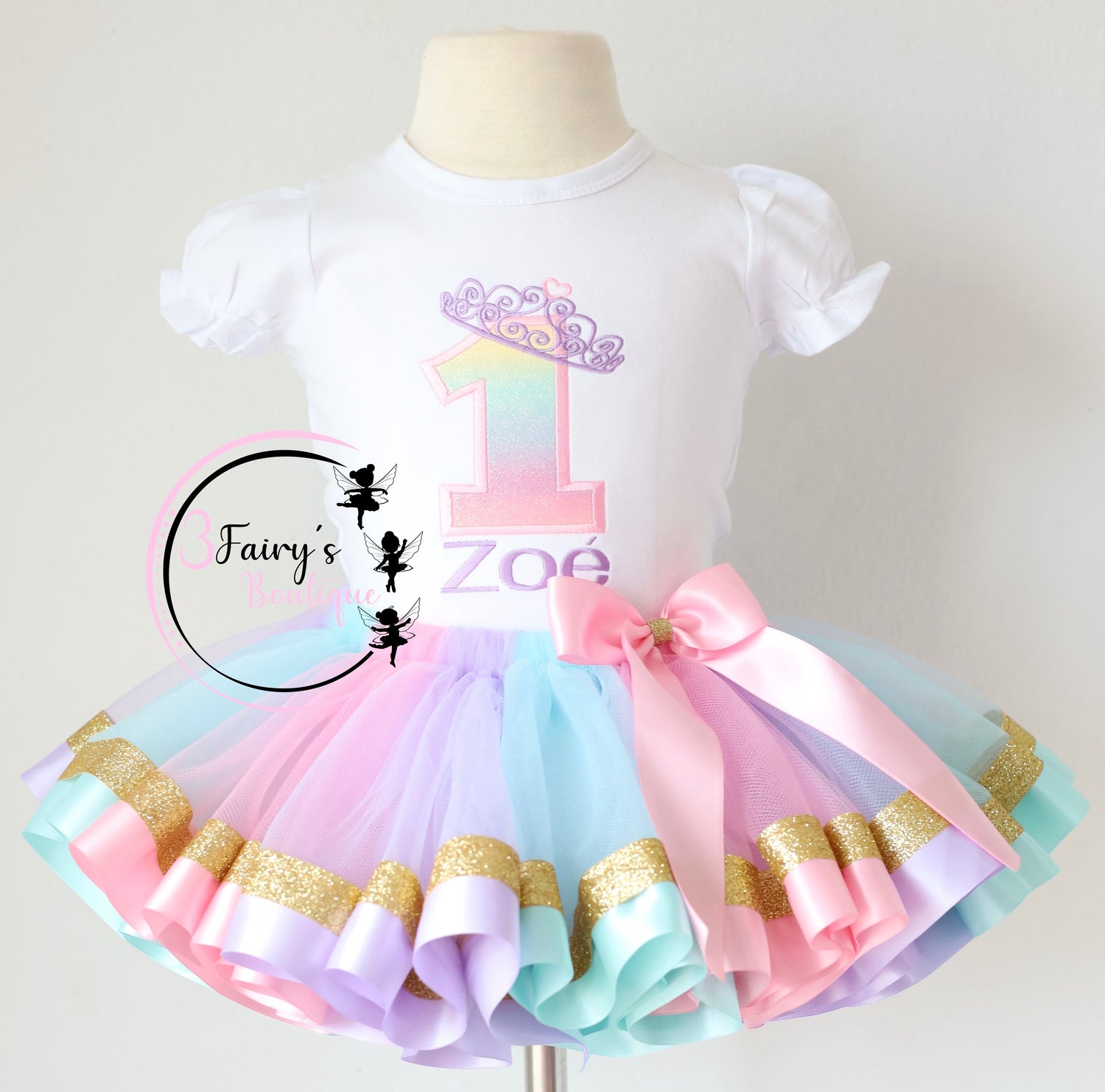 Pastel Birthday Tutu Outfit Personalized Embroidery.
